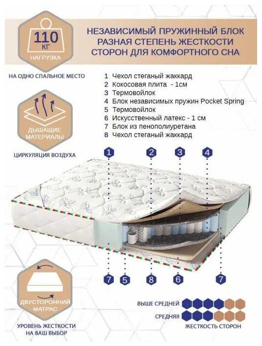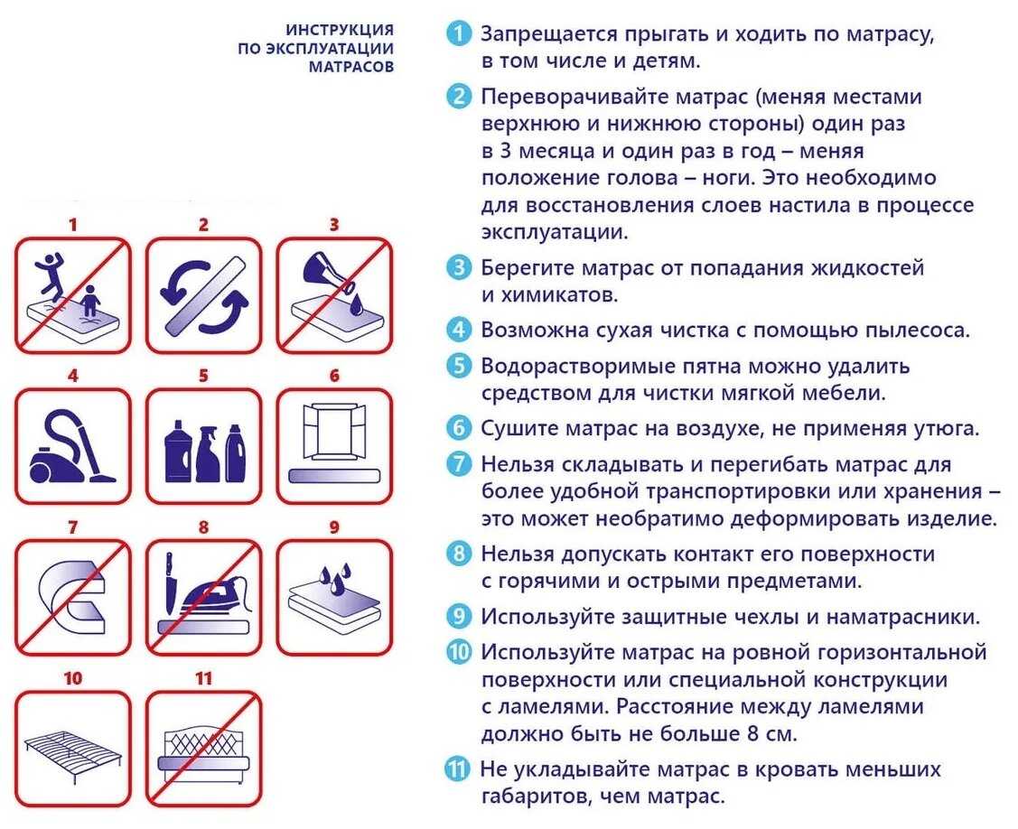 - - одна сторона была изнутри пробита пружиной. за полгода использования начал просаживаться, переворачиваем постоянно, но... долго не проживет. готовимся покупать новый на новый год...