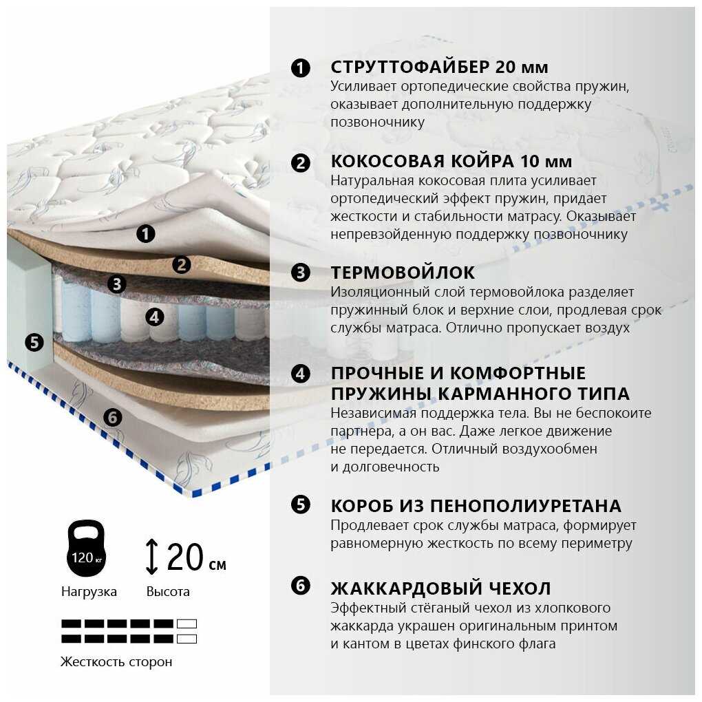 - + Купил себе новый бело-синий матрас сделанный из комбинированной койры и струтопласта. Использование данного оптопидического изделия пошло на пользу моей голове и спине, теперь я чувствую себя более отдохнувшим и свободным от боли. Не смотря на то, что я использую матрас уже целый месяц, он не продавливается и...