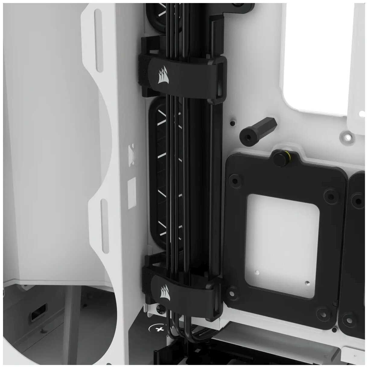 Красивый, просторный, боковые, верхняя и передняя панель- закаленное тонированное стекло. Огромный потенциал в размещении охлаждения. Встроенный контроллер для управления 6 вентиляторами корсар с ргб подсветкой. Есть дополнительная задняя дверца, закрывающая укладку кабеля.