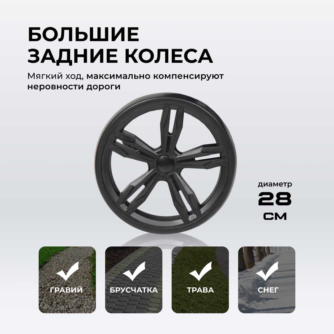 - + Легкость сборки. Легкость коляски. Ребенку в ней не тесно. Для зимы это идеалы вариант, так же как и для другого времени года. Она не едет а плывет. Для роста 160 высоковата, но никак не влияет на управление