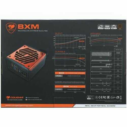 Прошло всего 3 дня с момента покупки, но познается всё в сравнении. После апгрейда пк мой aerocool vx700 перестал справляться. Под нагрузкой не уверен что он выдавал хотя бы 550. По 12v линии просаживалось напряжение до 11.0v, о разгоне пк и вовсе не мечтал. Поставил этот Cougar bxm 700, теперь под той же нагрузкой 11.9-12.1v. Перестало зависать в пиковых нагрузках, короче по работе блока очень доволен. Понравились длинные и качественные кабели, основные в оплетке черной, остальные модульные без оплетки, все провода черного цвета. Теперь в пк нет безобразия из проводов. Из за 135 мм вентилятора, бп не слышно в корпусе и под столом! Прошлый мой aerocool vx700 шумел больше всего в пк как вертолет, если собирайте тихую и мощную систему, берите cougar. Сравнивал его с be quite power 9 700w, пришел к выводу что за бренд можно не переплачивать, т. к процент брака у be quite есть как у всех, особенно в 9 серии где вентиляторы дешевые из 2010 года, шумные и не надежные, а в 11 серии уже фирменные и тихие но он уже не конкурирует с этим cougar, ом в цене. Не бойтесь пробовать продукцию о которой мало что известно и мало отзывов, изучите сами.