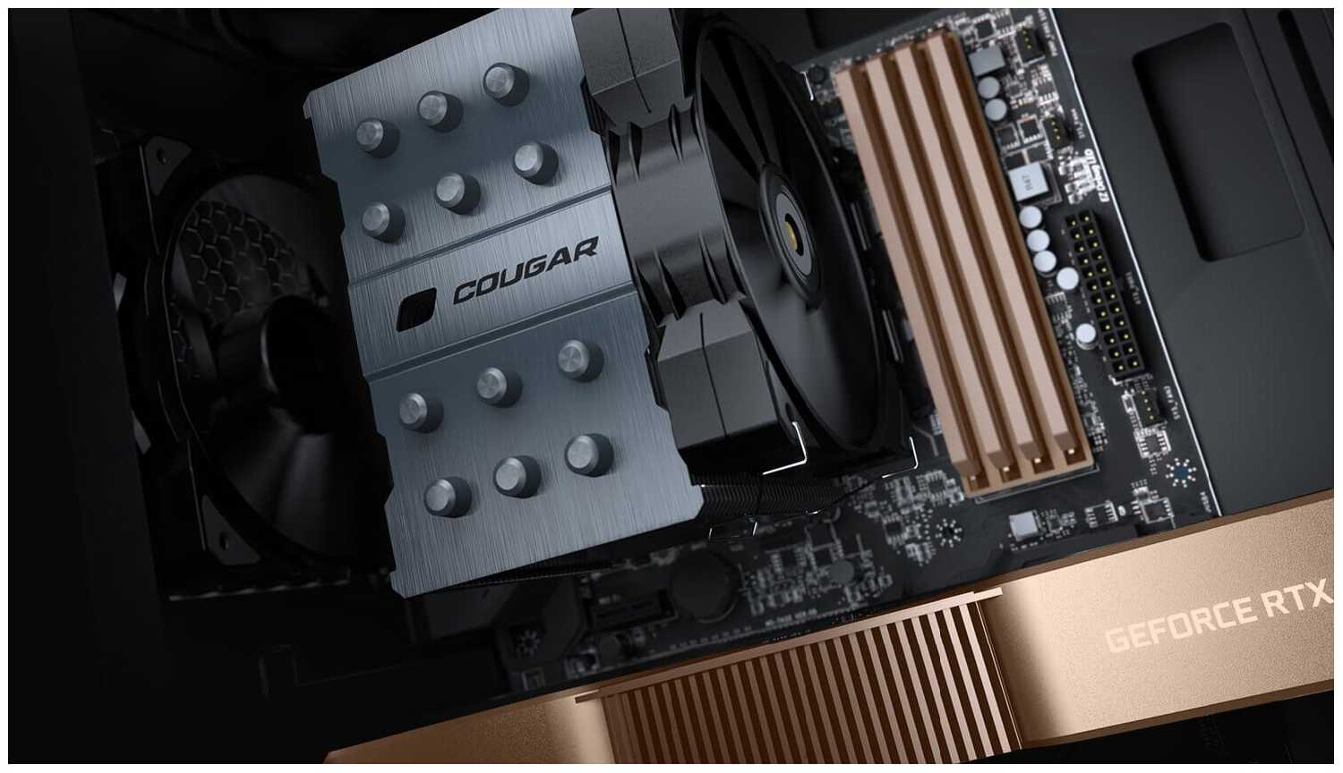 - Входит в корпуса глубиной от 180 мм (Zalman Z3 Plus, Cougar 660 Mesh) без конфликтов с видеокартами.