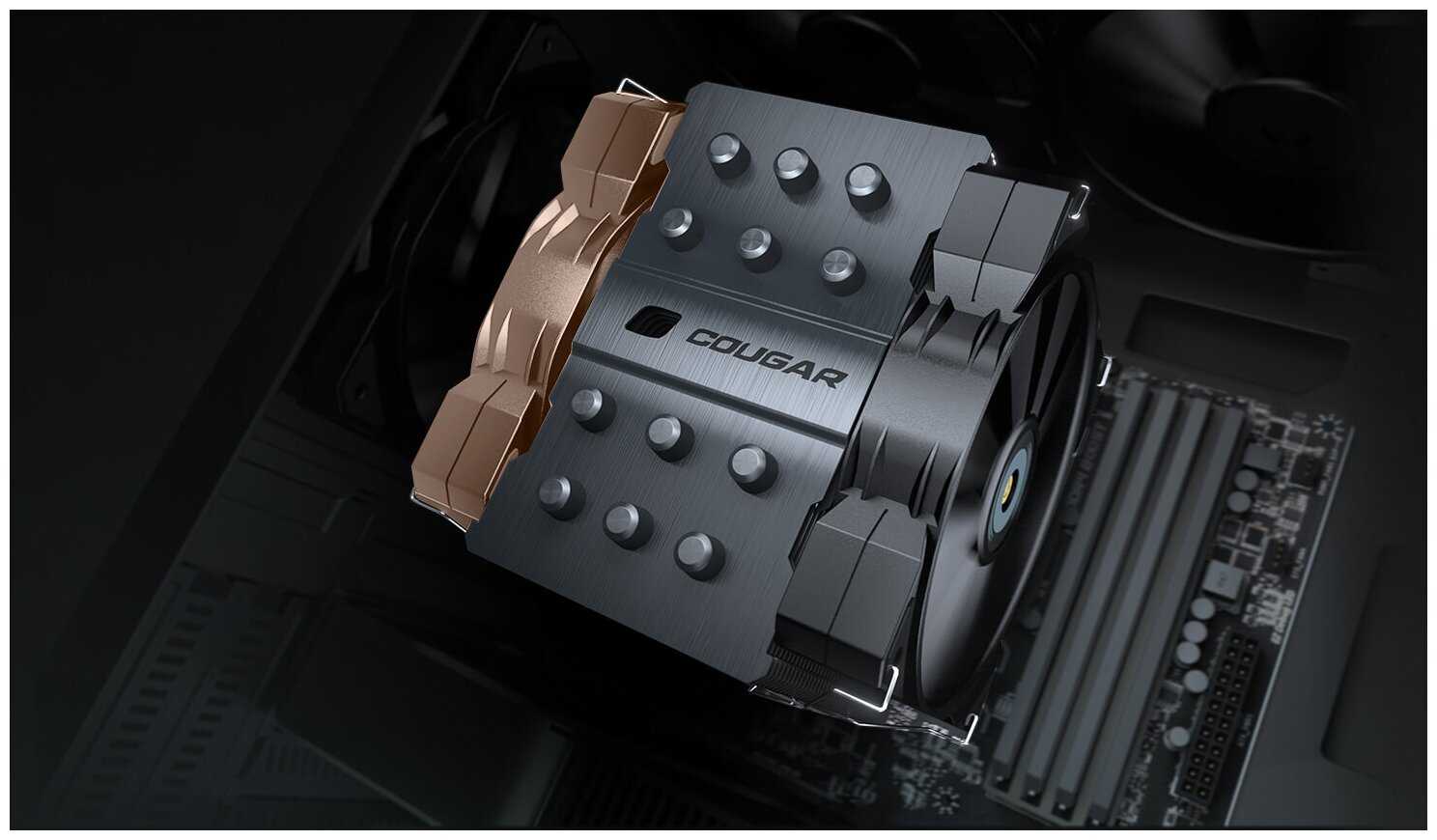 При высоте 160 мм кулер вписывается в большинство корпусов (например, Deepcool Matrexx 55), но в компактных моделях типа MX-330-F зазор до боковой панели может сокращаться до 2 мм. Радиатор не перекрывает слоты RAM (совместим с модулями до 34.1 мм, такими как Kingston Fury Beast), однако критично близко располагается к видеокартам — NVIDIA RTX 3080 и Palit GTX 1650 Dual находятся вплотную к тепловым трубкам. Монтаж на Intel LGA1700/LGA1200 оценивается как простой, тогда как для AMD AM4/AM5 возникают сложности: штатный бэкплейт материнских плат часто не подходит из-за разницы диаметров винтов, требуются дополнительные проставки. В комплектной отвертке с магнитным наконечником пользователи видят значительный плюс.