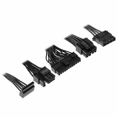 - Три независимых кабеля PCI-E с двумя разъемами на каждом обеспечивают гибкость подключения видеокарт.