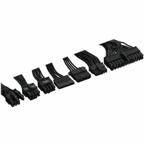 Все кабели PCI-e имеют двойные коннекторы 6+2 pin, что приводит к свисающим "хвостам" при подключении видеокарт. Сами провода не объединены в оплётку, поставляются россыпью, что осложняет аккуратную укладку. Дополнительно отмечается избыточная жёсткость кабелей, особенно для разъёмов 24-pin и PCI-e. -