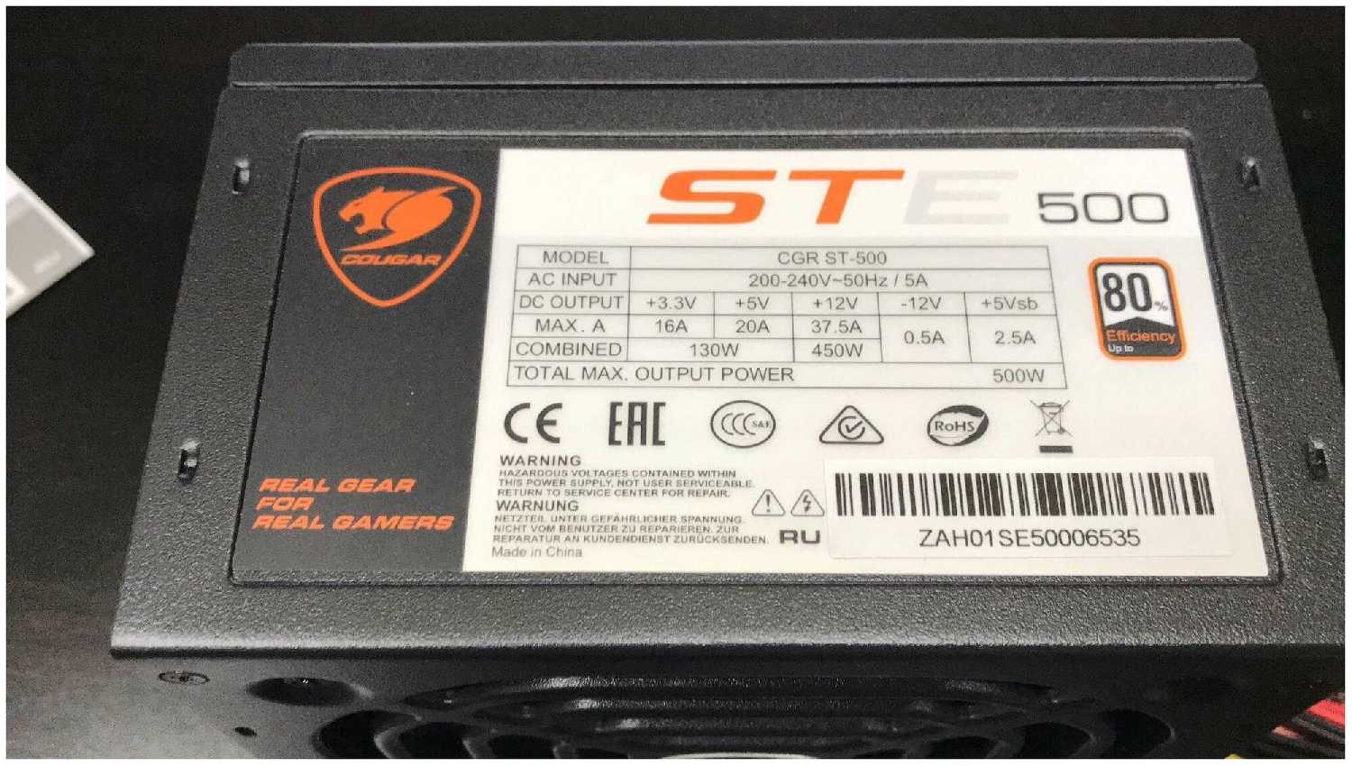 Купил в замен aerocool vx500,принес домой,открыл коробку (была без пленки) и не обнаружил кабеля питания видимо забыли положить на заводе, либо это так и должно быть,к счастью подобных кабелей у меня дома аж 2шт и предъявлять свои притензий я не стал.Характеристики отличаются в положительную сторону (прикладываю фото) сравните с моими и что на сайте.Работает ну очень тихо кто бы ничего не говорил,да даже если бы и шумел я бы все равно не услышал ибо в самой нагрузке моя 580 идет на взлет как реактивный истрибитель а в простое так вообще все молчит.Не греется,даже в играх,трогал рукой,выхлоп сзади еле теплый даже спустя продолжительное время работы,хоть у меня r5 1600 в разгоне до 3.8ггц,16гб озу и rx580 8gb.Рекомендую к покупке!Ну и в отличии от vx 500 я заметил такую особенность то что этот кугар после отключения (кнопкой на бп) моментально разряжает кондеры,vx500 оставлял какой то заряд даже спустя час можно было побровать включить комп с выключенным бп и он на долю сек крутил вертушками а потом только отрубался (думаю это не есть хорошо).