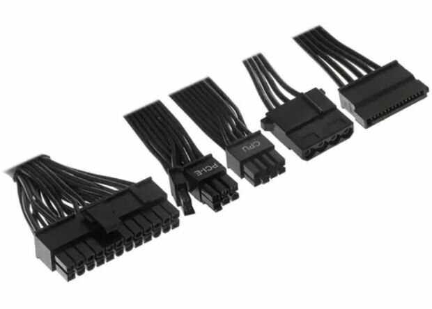 - Длина основного 24-pin кабеля 55 см позволяет прокладывать его в корпусах Full-Tower с нижним расположением БП.