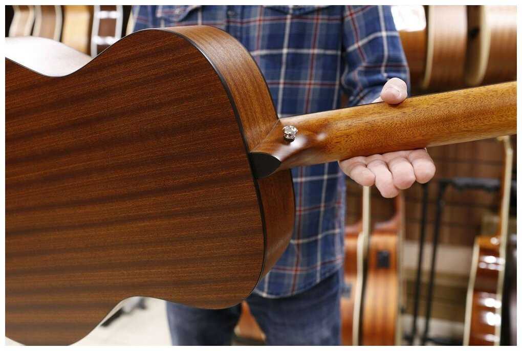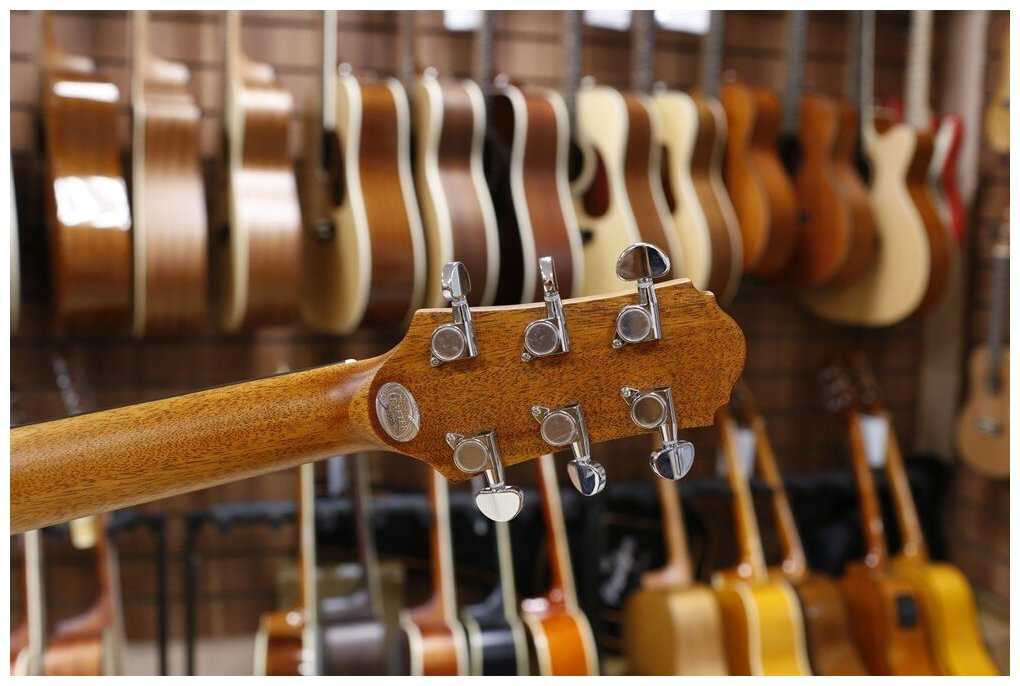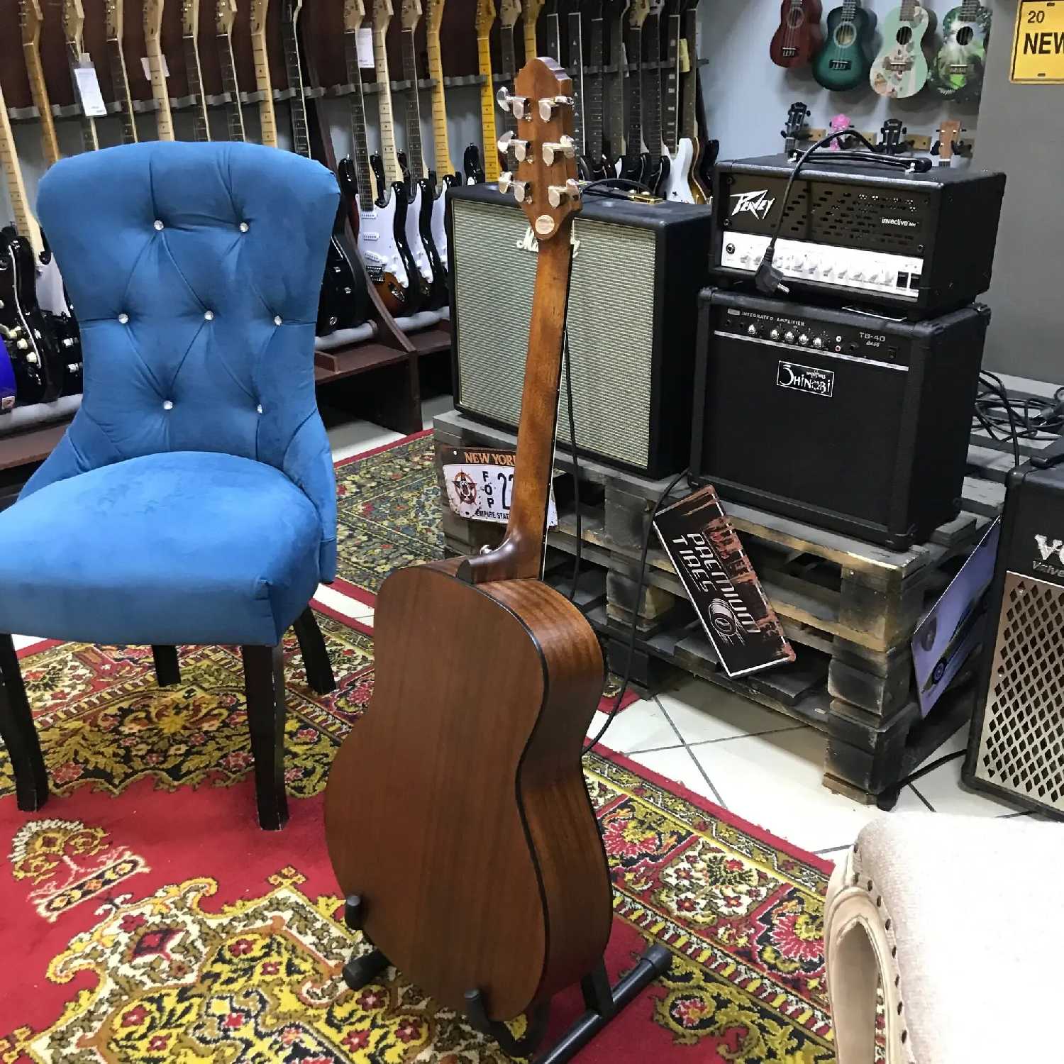 - + Сама гитара огонь, собрана отлично, выглядит тоже, в комплекте идет накладка черная, которую можно приклеить и будет выглядеть как на фото, гриф не слишком толстый, по электронике все замечательно: тюнер работает отлично, звучит приятно