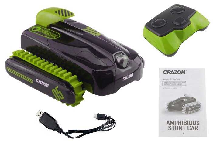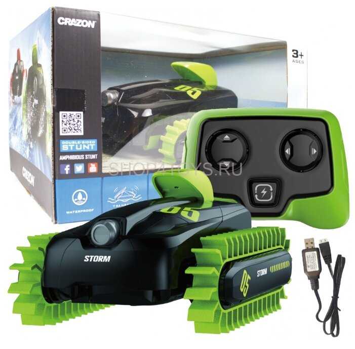Очень шустрая машина, быстро ездит. Махом разворачивается на месте. Нажатием кнопки на пульте превращается в амфибию и может плавать в воде.
