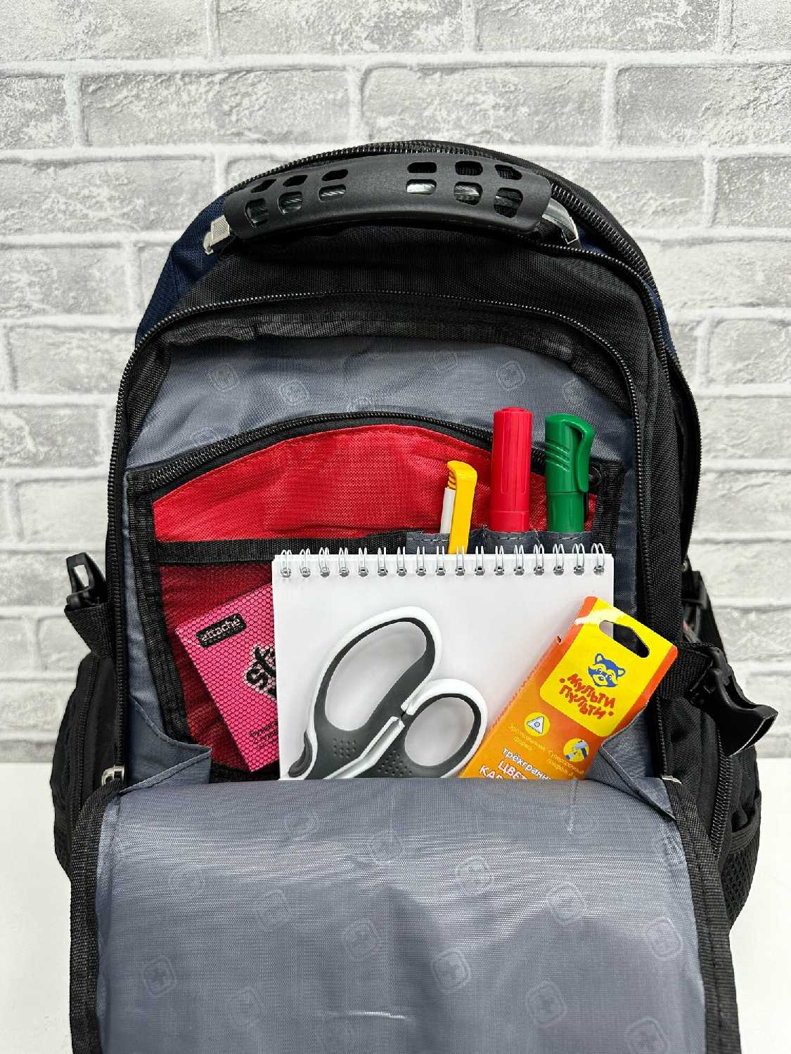 - + Большой,много разного размера кармашков,поместится и ноутбук,ткань прочная,ручка выглядит надежно прикрепленной,есть чехол от дождя ..Короче,есть всё заявленное.. все как на фото)