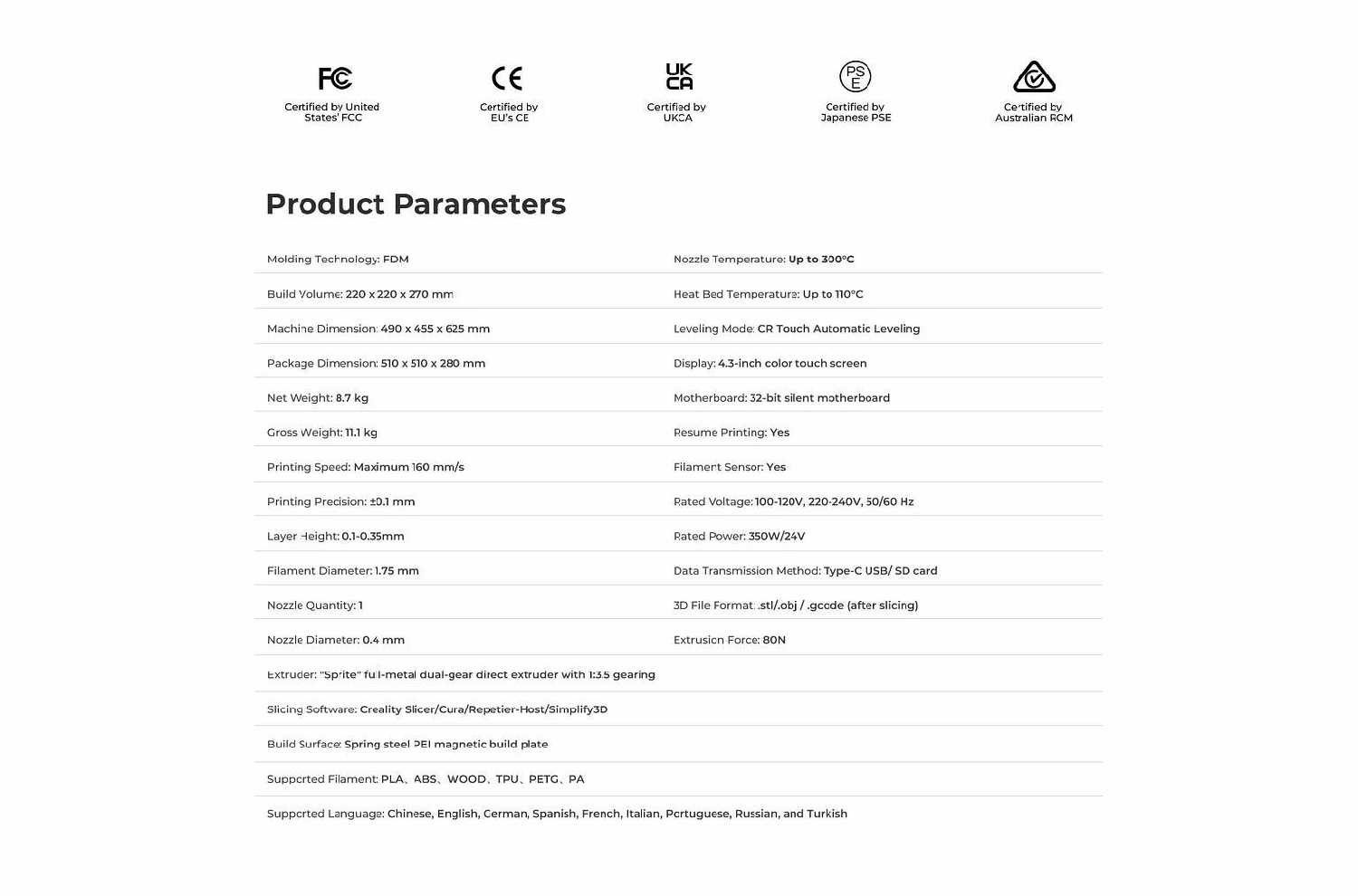 | Рекомендуемое ПО : | Creality Print, Creality Slicer, Repetier-Host, Simplify 3D, Ultimaker Cura |