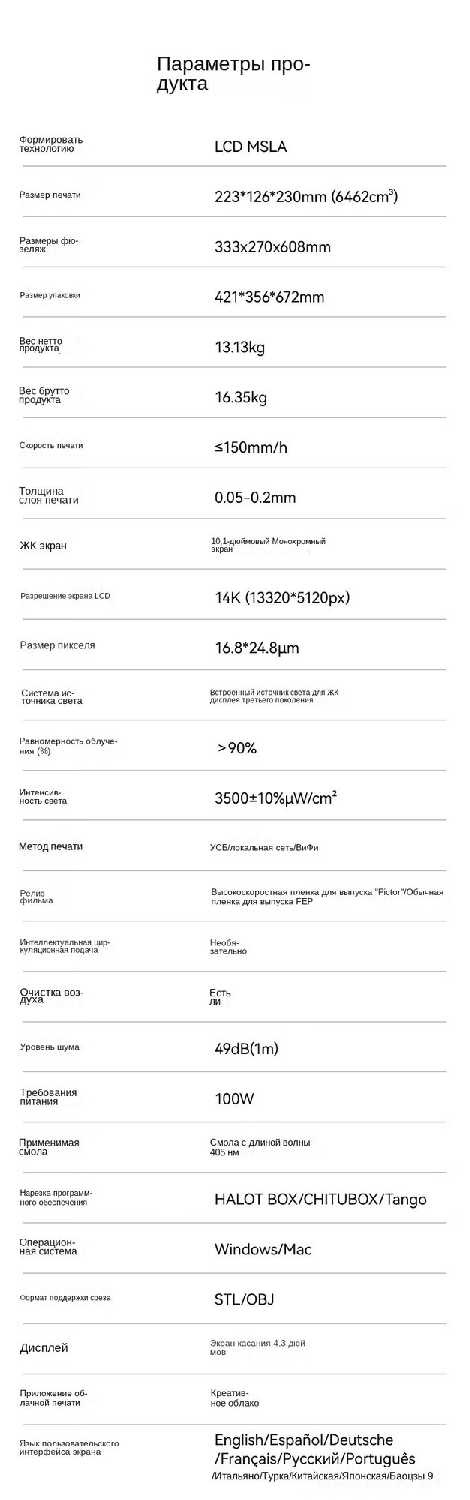 - + Отличный принтер. Рекомендую 👍Есть поддержка русского языка. Внутри лицензия на 1 год на ChituBox,хотя родной Halot вроде нетмеет недостатков. Быстрая доставка.
