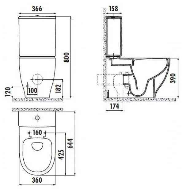 Характеристи Creavit Mare MA361.00000 с горизонтальным выпуском