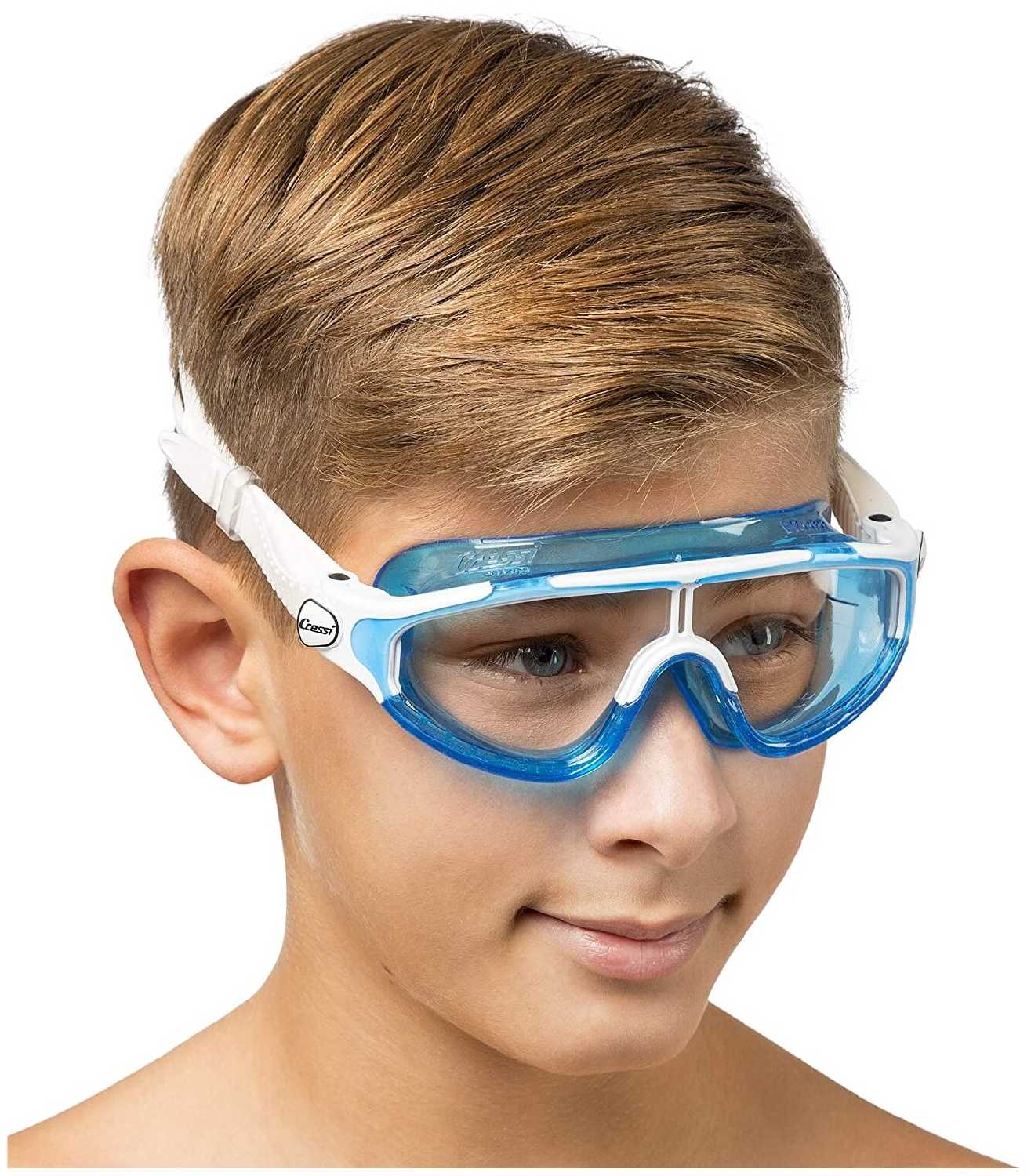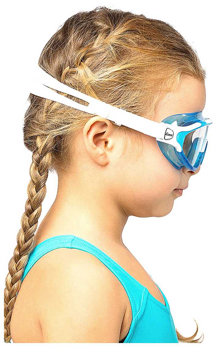 - Помогает детям уверенно нырять и видеть под водой.