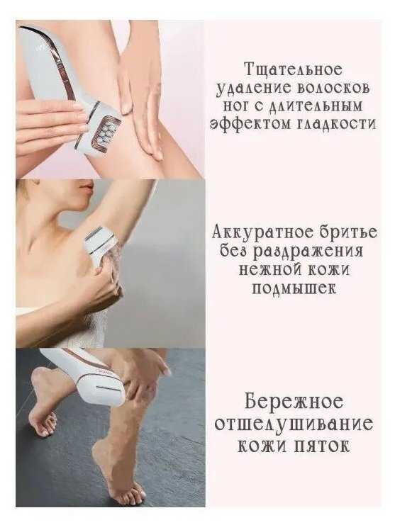 Нормальный эпилятор, тем более для своей цены. Многие в комментах возмущаются, что нужно несколько раз проходить по одному месту для полного удаления волос. Но и с более дорогими брендами ситуация такая же. До этого эпилятора у меня был недешевый Браун , он тоже с первого раза не убирал. Так что эпилятор топ. Приятным сюрпризом стала полноценная насадка для пяток (если честно не ожидала). Рекомендую.