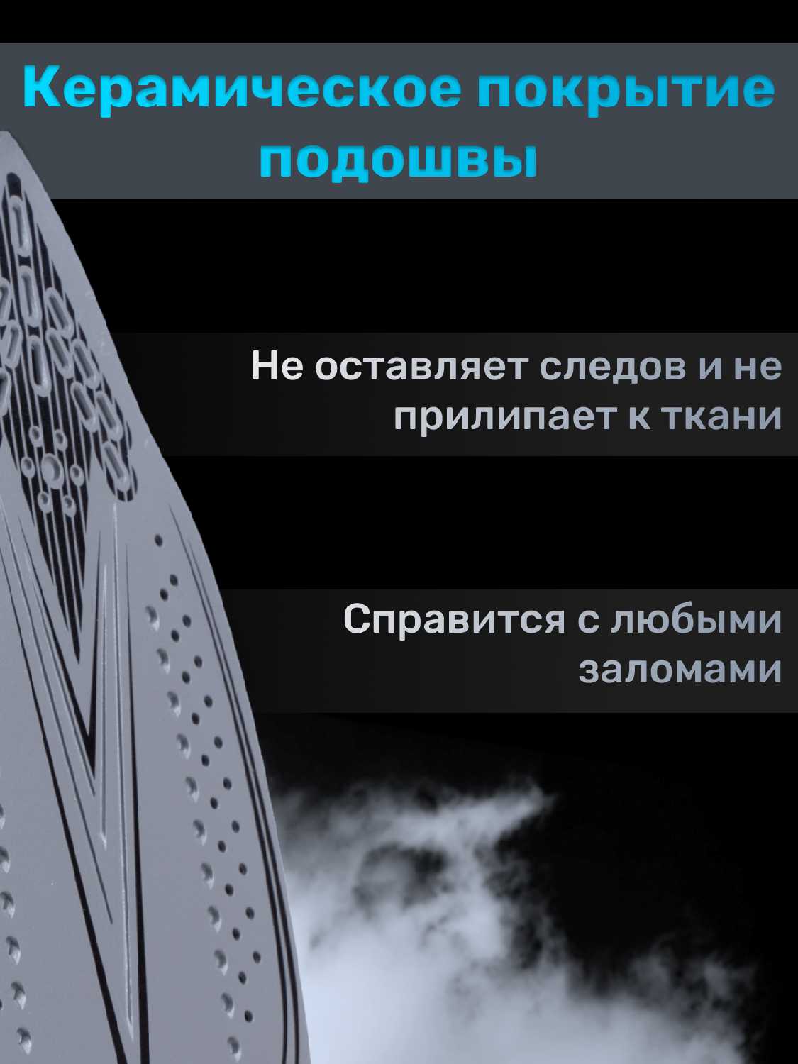 Керамическая подошва утюга обеспечивает плавное скольжение по поверхности одежды, что подтверждается отзывами о гладкой поверхности без зазубрин. Однако некоторые пользователи столкнулись с прилипанием подошвы к ткани при длительном использовании. Для предотвращения этого рекомендуется аккуратное обращение и соблюдение температурных режимов. -