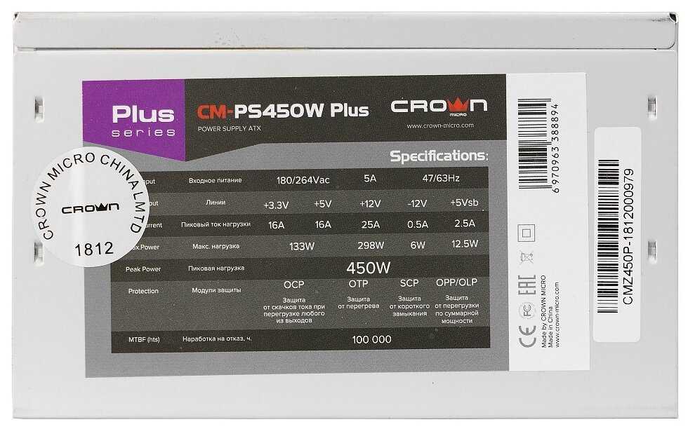 Отзывы о Блок питания CROWN MICRO CM-PS450 Plus 450W