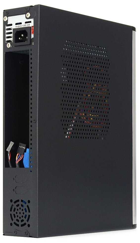 - + Микро корпус, влезает micro ATX и mini ITX. Встроенный БП на 300вт, есть 2 посадочных места для корпусных вентиляторов.