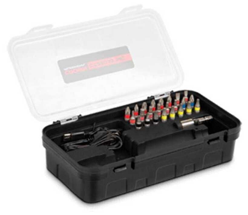 - + Отвертка в кейсе с битами. Удобная, сильная.