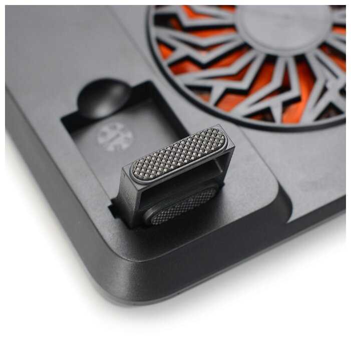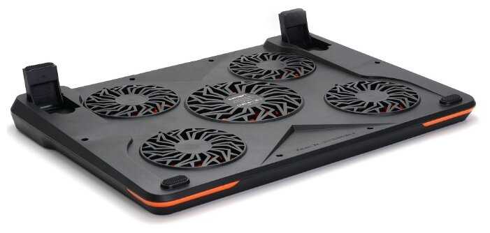 Вентилятор не шумит, но тарахтит; качество подставки оставляет желать лучшего; даже логотип приклеен криво, не говоря уже о мягких накладках от скольжения, которые, кстати, начали отклеиваться ещё до того, как я поставил на них ноутбук; держатели крепятся очень туго и имеют неудобную форму, царапают руки и не дают открыться ноутбуку, если он не на подставке; железная опора не крепится и постоянно болтается, если подставка в собранном положении; в собранном положении подставки ноутбук стоит не горизонтально; ноутбук 17" явно больше, чем подставка, но это не сильно мешает