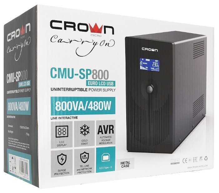 Отзывы о Интерактивный ИБП CROWN MICRO CMU-SP800 Euro LCD USB