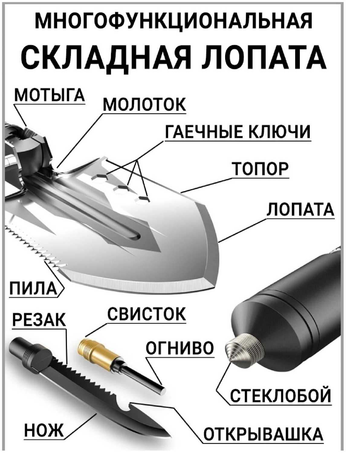 Отзывы о Туристический нож , мультитул набор для выживания, комплект аксессуаров Лопата - Топор