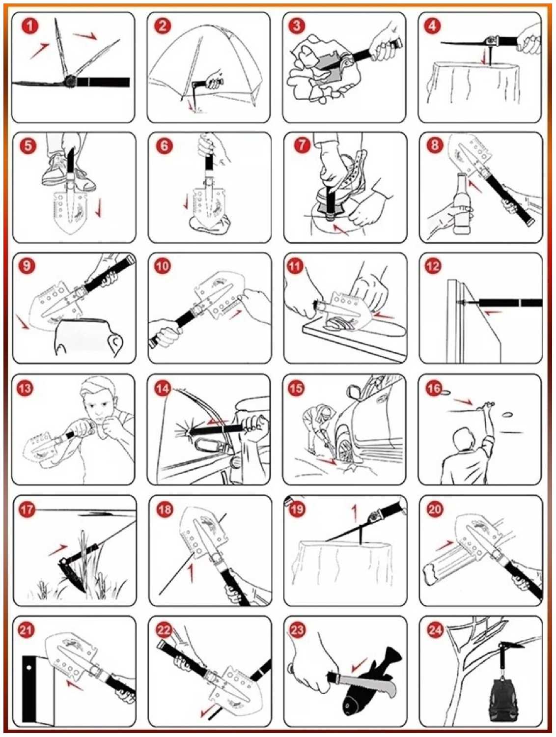 9 отзывов пользователей o CROWN Туристический нож , мультитул набор для выживания, комплект аксессуаров Лопата - Топор