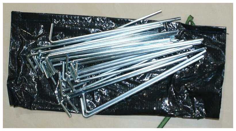- Колышки из мягкого металла гнутся в твердом грунте, а в песке требуют замены на анкерные (докупаются отдельно).