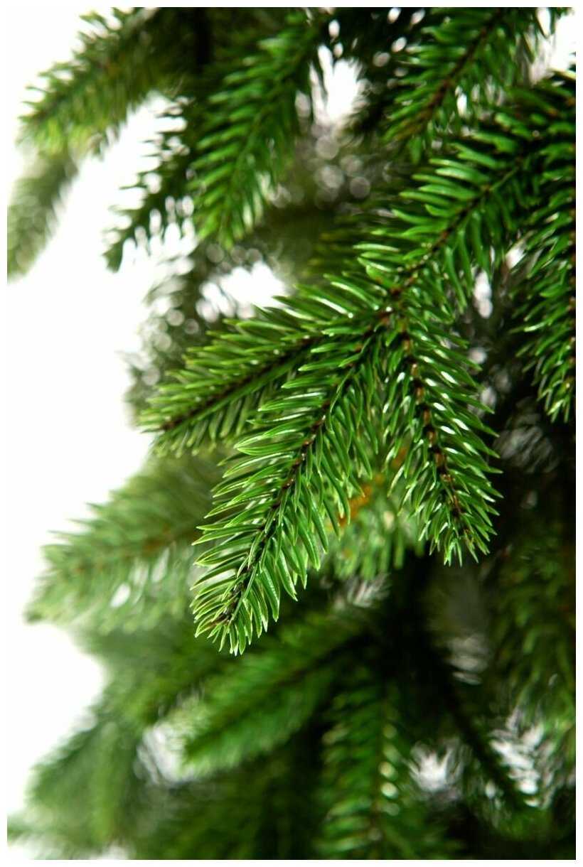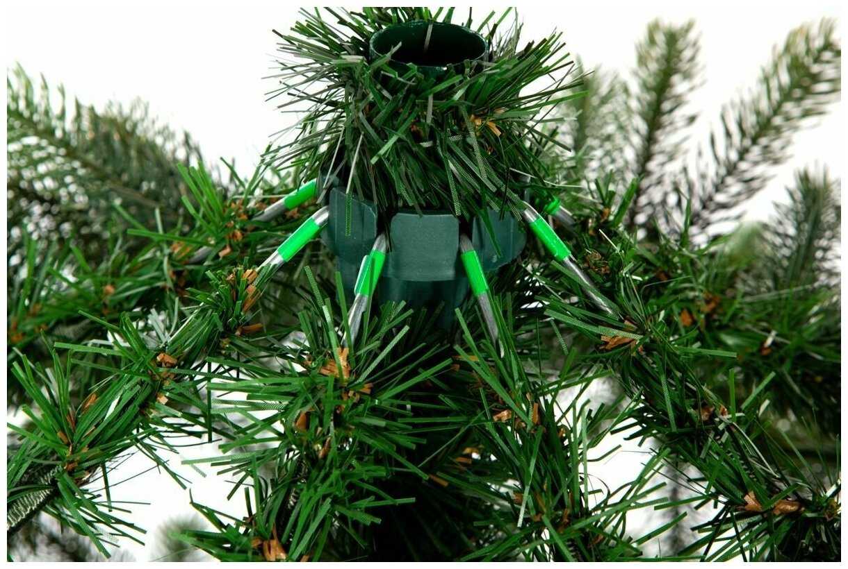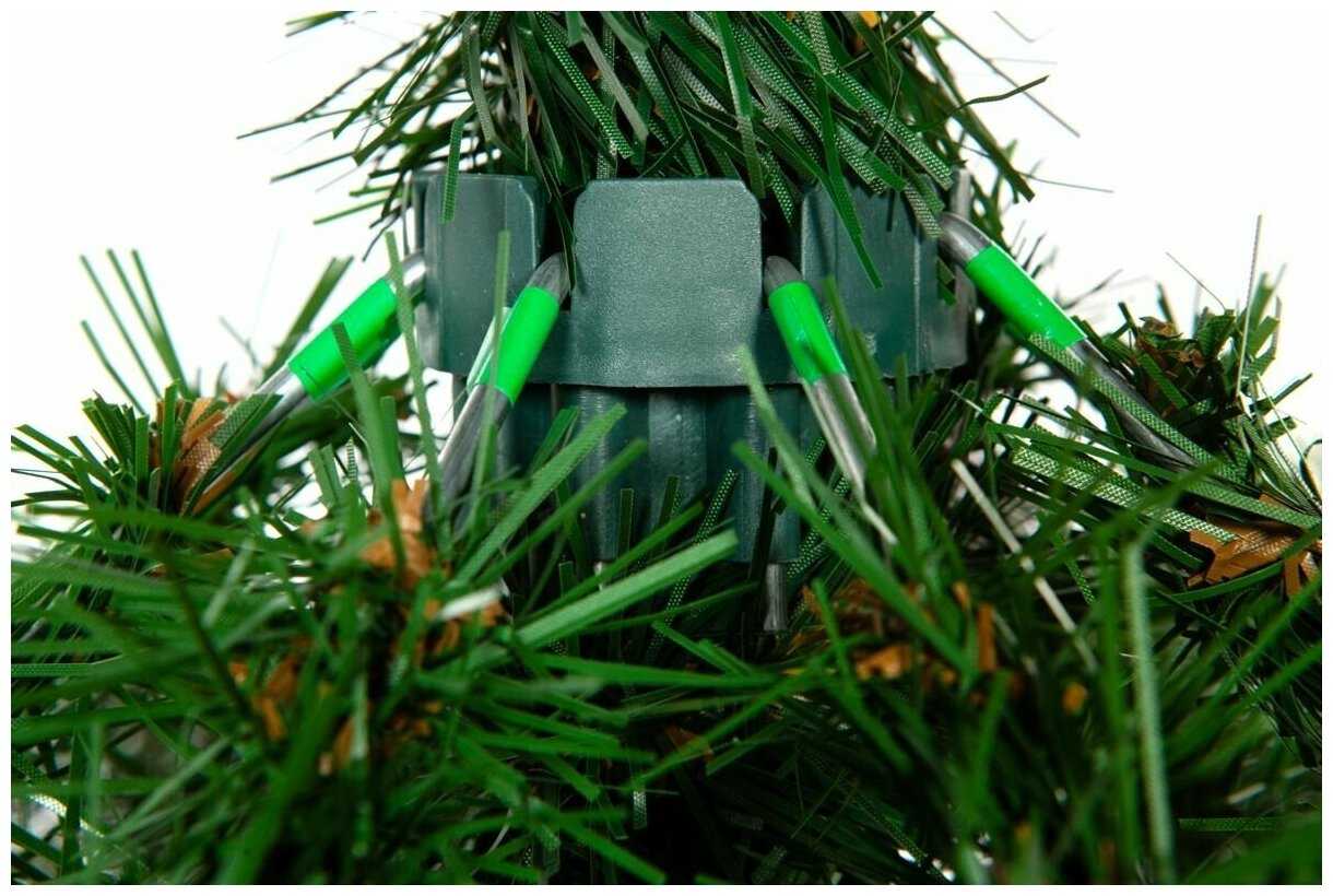 Елка 180 см высотой достаточно компактная для небольшого пространства. - - Недостаточная фиксация веточек на стволе: при украшении гирляндами они постоянно вылетали из пазов.