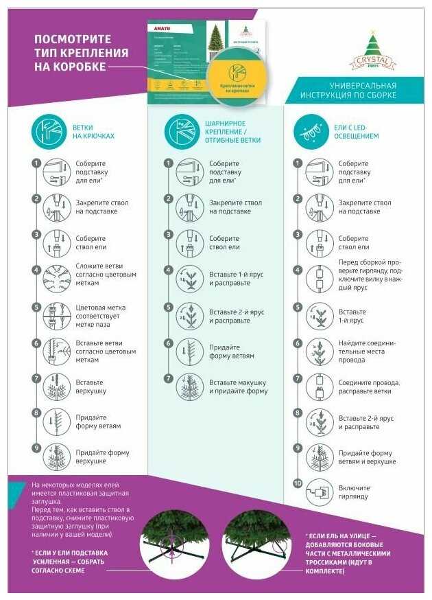 Быстрая и лёгкая сборка: все ветки помечены цветовым индикатором для правильного крепления. Не сыпется, без неприятного запаха.
