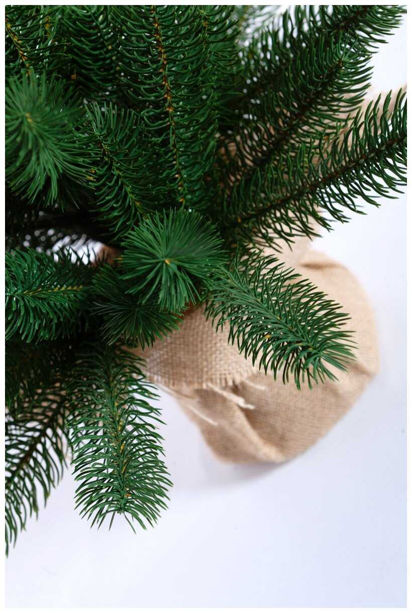 - + Маленькая, но очень уютная и качественная ель. Приятный глубокий цвет игл, частота и композиция веток хороши, держит форму, холщовый мешочек скрывает основу каркасса.