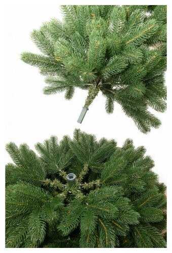 Очень красивая елка 155 см, пышная. Ель литая, ветки на шарнирах. Внешние ветки литье , а внутри ПВХ ветки, которые создают густоту. Ель состоит из двух частей и подставки, которая закручивается тремя болтами, чтобы держать ствол.