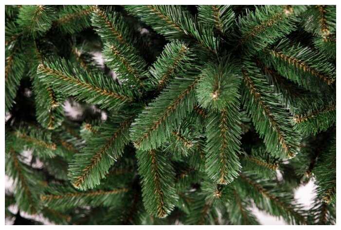 - + Замечательная, пушистая ель. Форма края веточек с "иголками" закругленная, это очень классно смотрится в отличие от "торчащих" "иголок" одинаковой длины. Сама веточка выделена коричневым цветом - очень красиво с темно-зелеными иголками. Сами ветки собраны очень качественно, обмотка прилегающих веточек плотная и качественная. Высота 2,1м очень подходящий размер для квартиры. Рекомендую елки именно этого производителя!