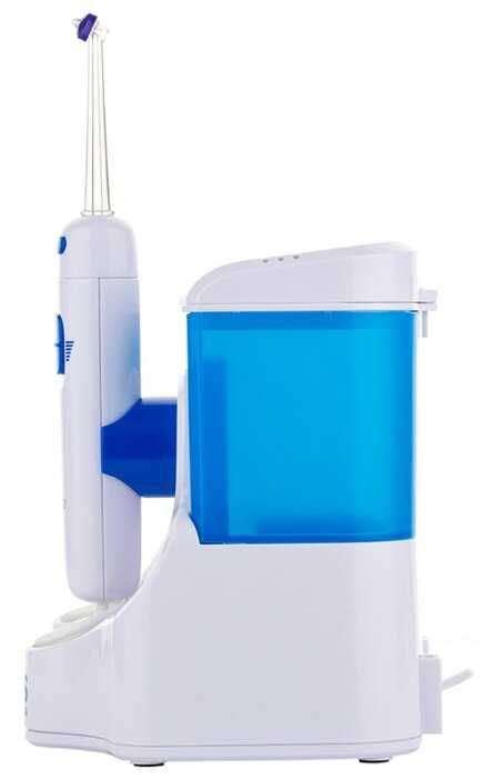 Прибор не большой, его можно крепить на стену. Воды хватает как раз на двоих как раз так, чтобы пользоваться без ограничений. Провод длинный, пользоваться из-за этого комфортно. Включается сенсорной кнопкой, насадки меняются одним движением. Эргономичность и функциональность продуманы до мелочей!