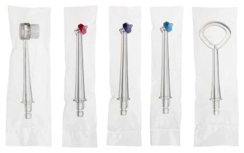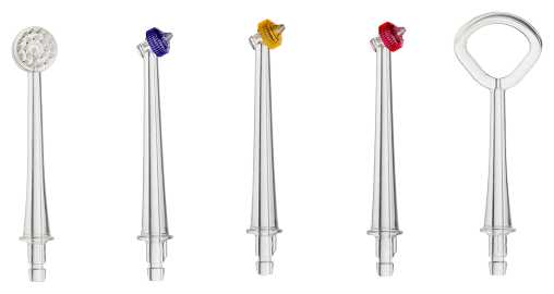 - 3 стандартные насадки с цветными кольцами для индивидуального использования семьей.