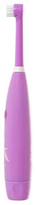 - + Работает от батареек, круглая форма насадки, яркий детский дизайн, хорошие чистящие свойства, удобная ручка, одного комплекта батареек хватает на длительное время.