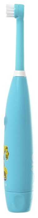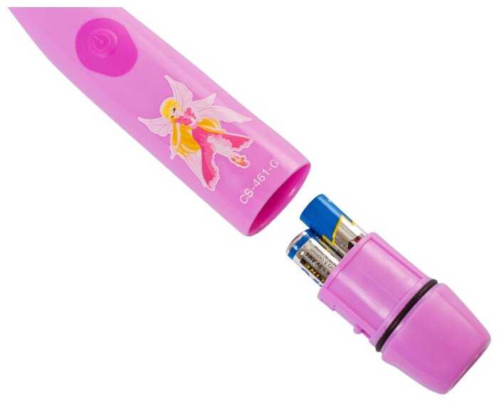 - + Работает от батареек, круглая форма насадки, яркий детский дизайн, хорошие чистящие свойства, удобная ручка, одного комплекта батареек хватает на длительное время.