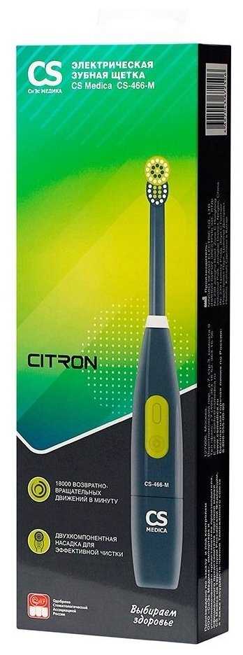 | Дополнительная информация : | Электрическая зубная щетка CS Medica средней жесткости. Подходит для комплексного ухода за полостью рта. Она очищает лучше, чем обычная, мануальная. Яркий дизайн. 2 варианта расцветки, белый и пион, графит и цитрон. Насадка с щетинками совершает 18 000 возвратно вращательных движений в минуту для тщательной очистки поверхности зубов, удаления налета, массажа десен и сохранения эмали. Беспроводная электрощетка подходит для эффективной чистки труднодоступных мест, чувствительных зубов, предотвращает кариес. Двухкомпонентная насадка для качественного очищения. До 60 дней работы от двух батареек ААА при использовании 2 раза в день по 2 минуты. Стильная упаковка идеальна для подарка. Для взрослых и детей от 12 лет. Одобрена стоматологами. |