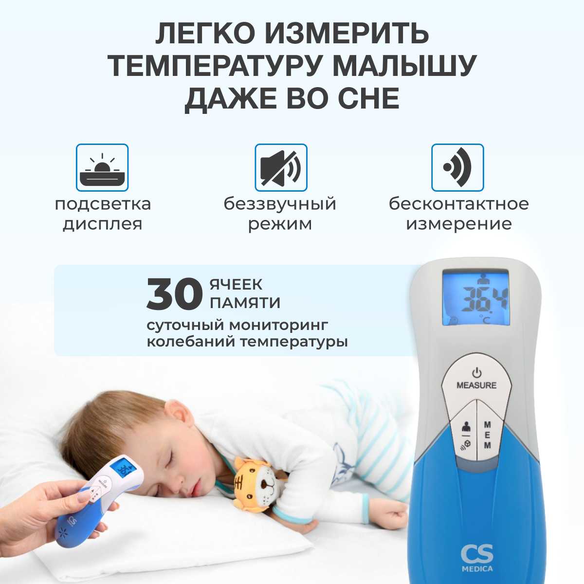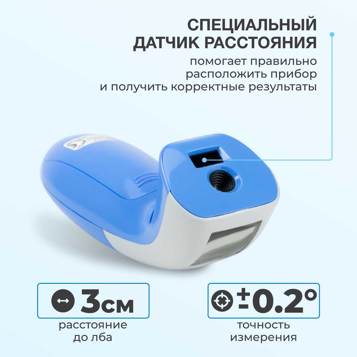 Прибор снабжен датчиком расстояния, который позволяет правильно расположить термометр при измерении. Процесс измерения температуры занимает 1 секунду, результат выводится на большой ЖК-дисплей с подсветкой, поэтому показания удобно считывать даже при слабом освещении. Благодаря ночному режиму без звука мама сможет измерить температуру малышу даже во время сна.