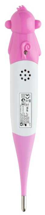 Приобрел данный термометр по рекомендации провизора в аптеке. Пришел за термометром для ребенка. Главным критерием в выборе были безопасность и удобство. Внешне очень понравился, особенно подкупил звуковой сигнал в виде крика обезьянки. Ребенку такой термометр очень понравился. Процесс измерения температуры проходит спокойно и относительно быстро. Единственное что меня смутило, это звуковой сигнал, после которого измерение можно продолжать. С этим вопросом даже обратился в сервисный центр, в котором мне спокойно проверили термометр и подробно объяснили, что измерять данным термометром нужно минимум 60 сек как и обычным ртутным термометром. Достоинство этого термометра, именно его безопасность (нет стекла, невозможно разбить и пораниться. Нет ртути внутри, гибкий наконечник), простота использования и точность измерения. Поэтому пользуемся им с удовольствием, ребенок переносит процесс измерения спокойно.