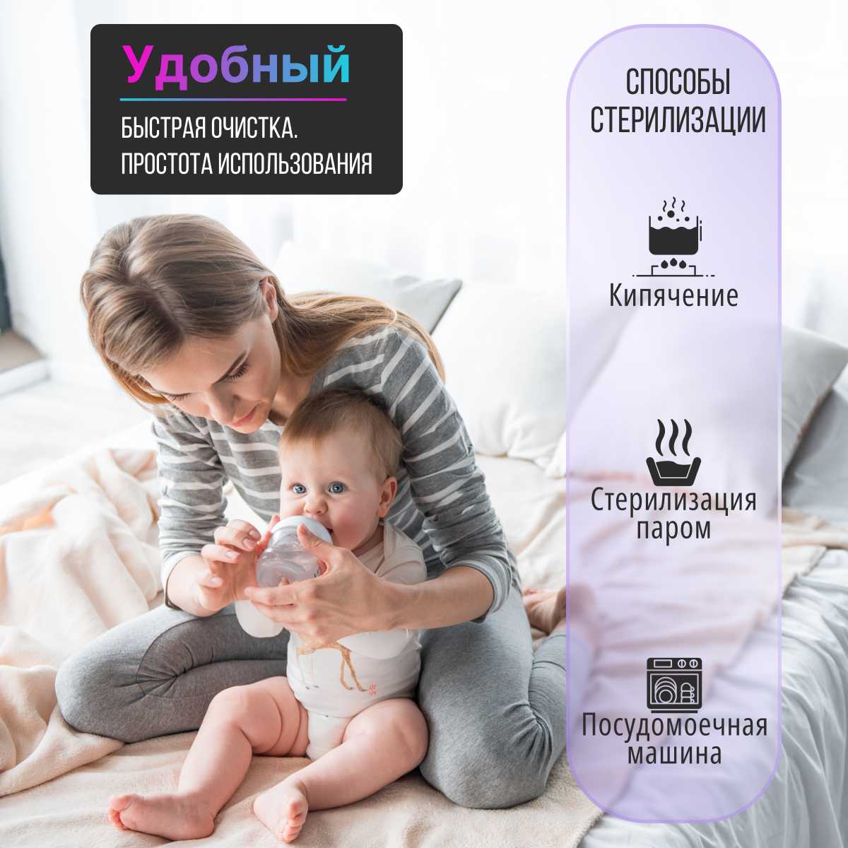| В комплекте : | бутылочка, воронка, крышка для бутылочки, массажная воронка, подставка для бутылочки, соска, чехол для хранения |