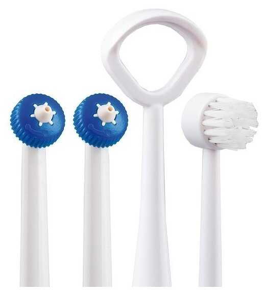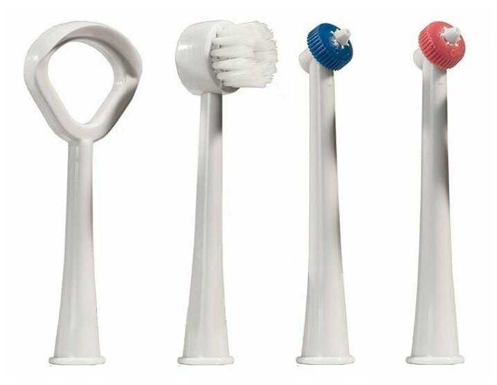- + Насадки высокого качества, хорошо очищают поверхность между зубов и язык