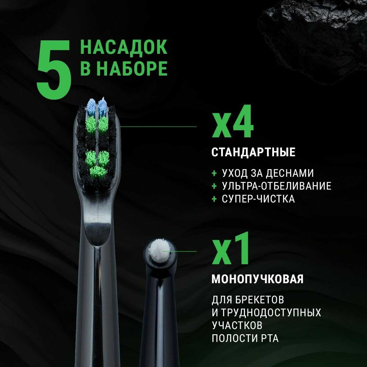 В комплекте пять насадок: четыре стандартные и одна монопучковая для специальных нужд. Пользователи довольны разнообразием, что позволяет использовать щётку для разных сценариев чистки. Однако некоторые жалуются, что запасные насадки этой модели трудно найти в продаже, особенно в малых городах. Рекомендуется проверять модель на сайте производителя перед покупкой. Колпачок для насадок идёт только один, что может быть неудобно при хранении нескольких. -