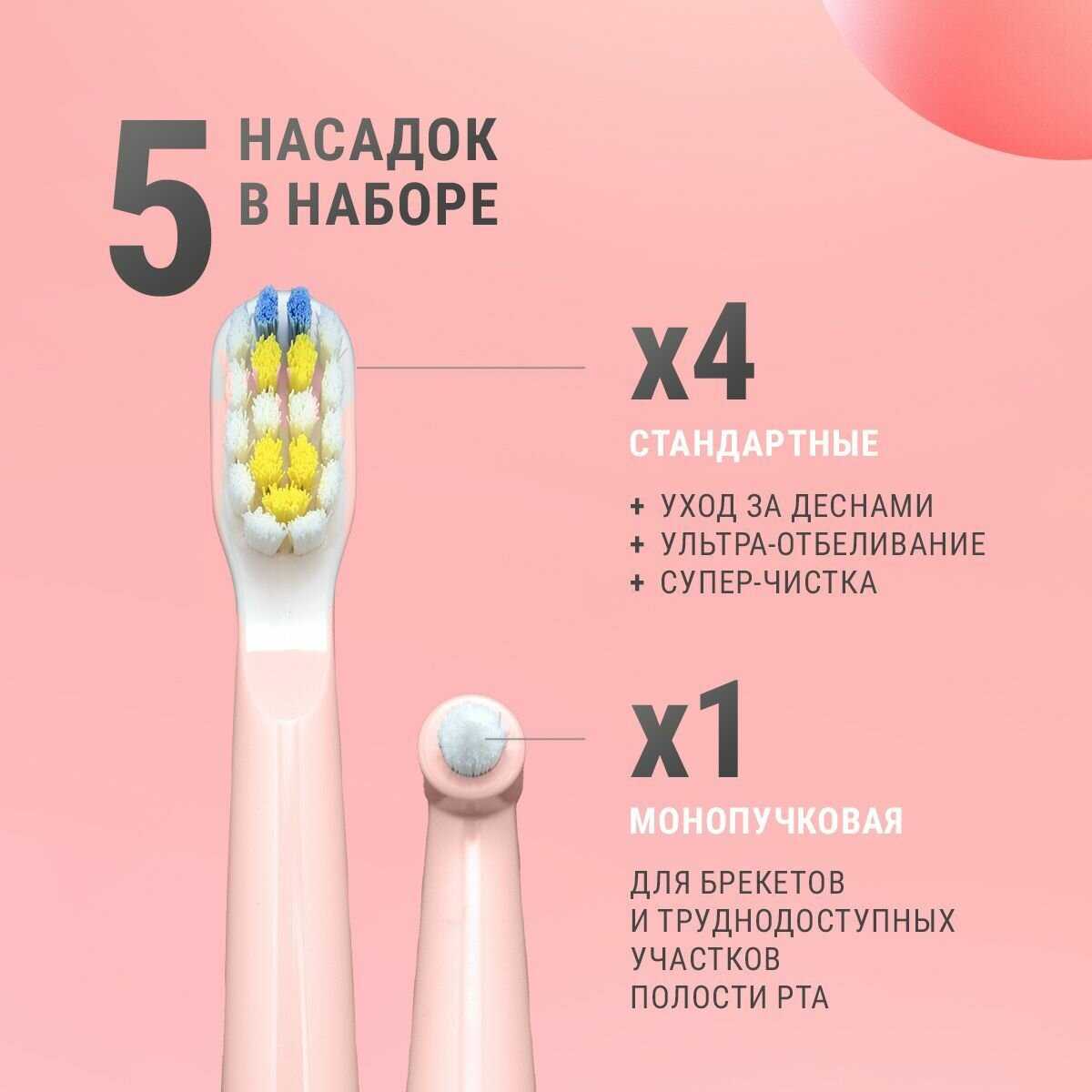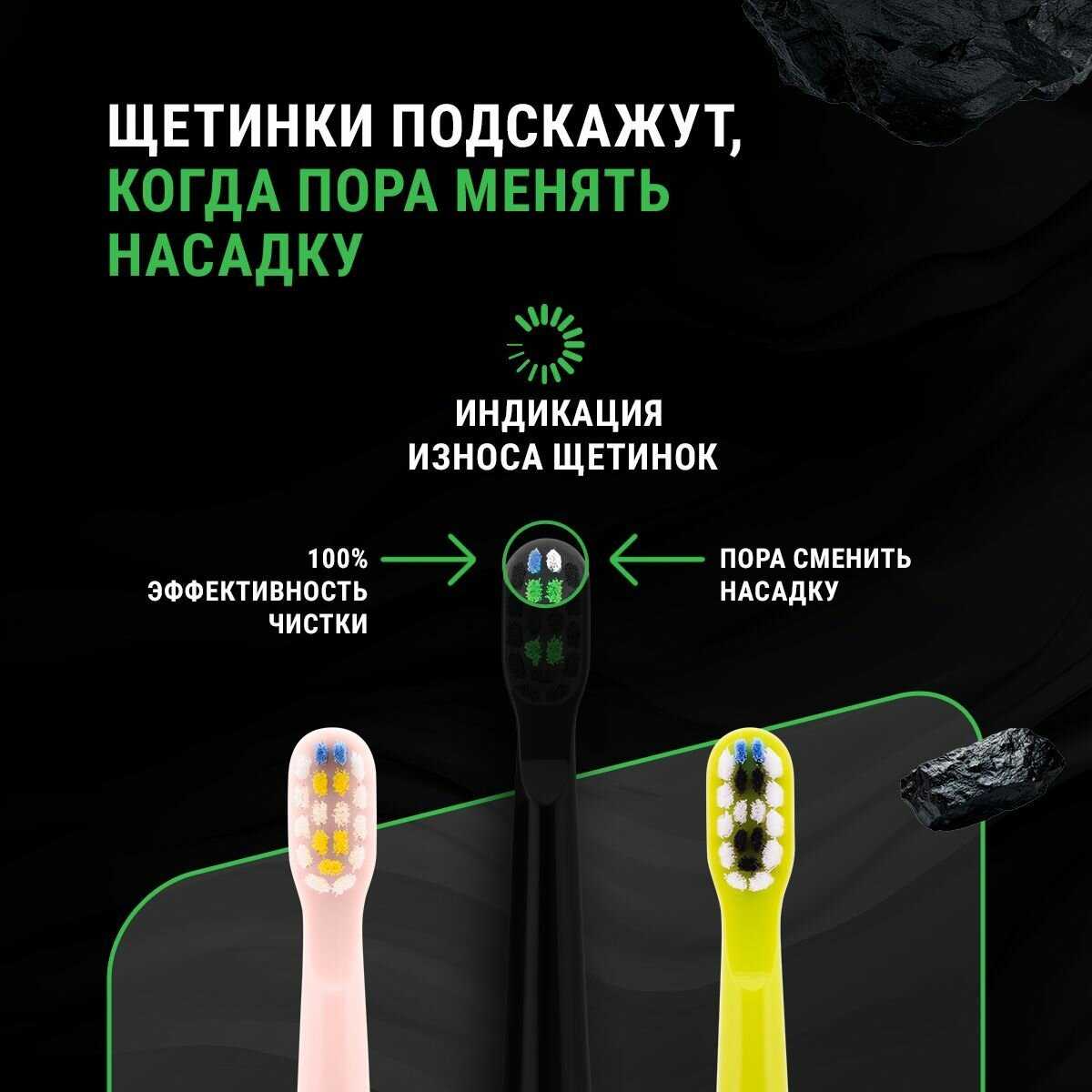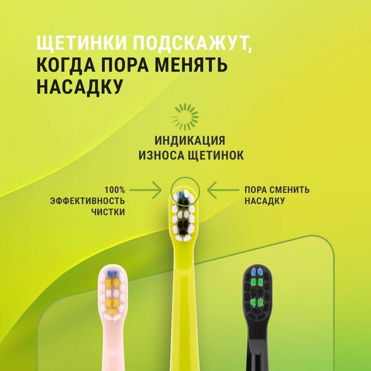 - + 5 режимов работы, ворсинки, меняющие цвет при необходимости замены