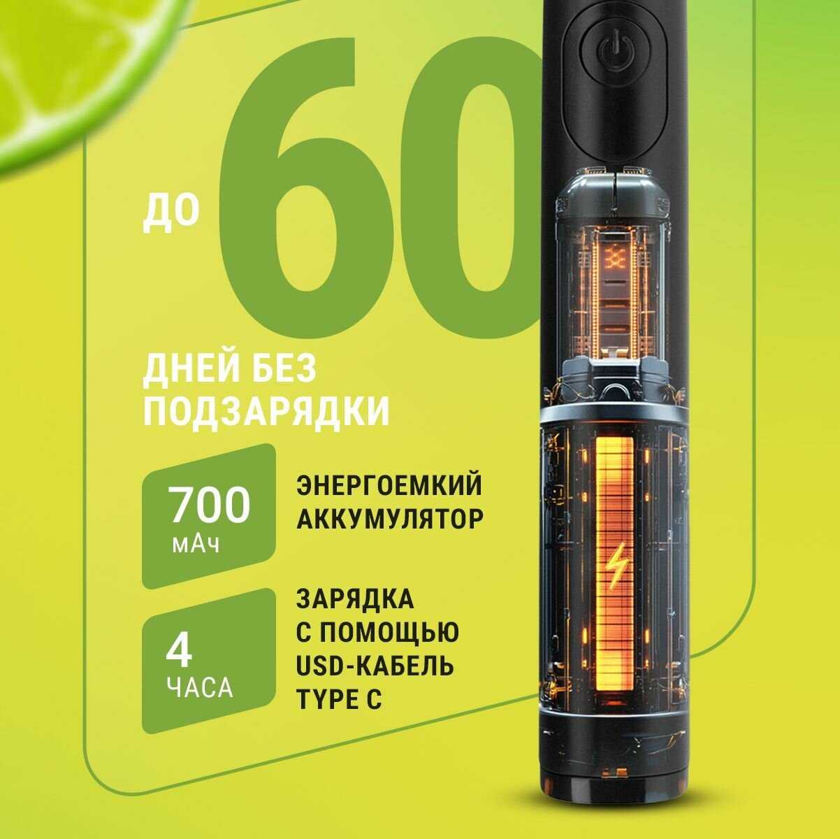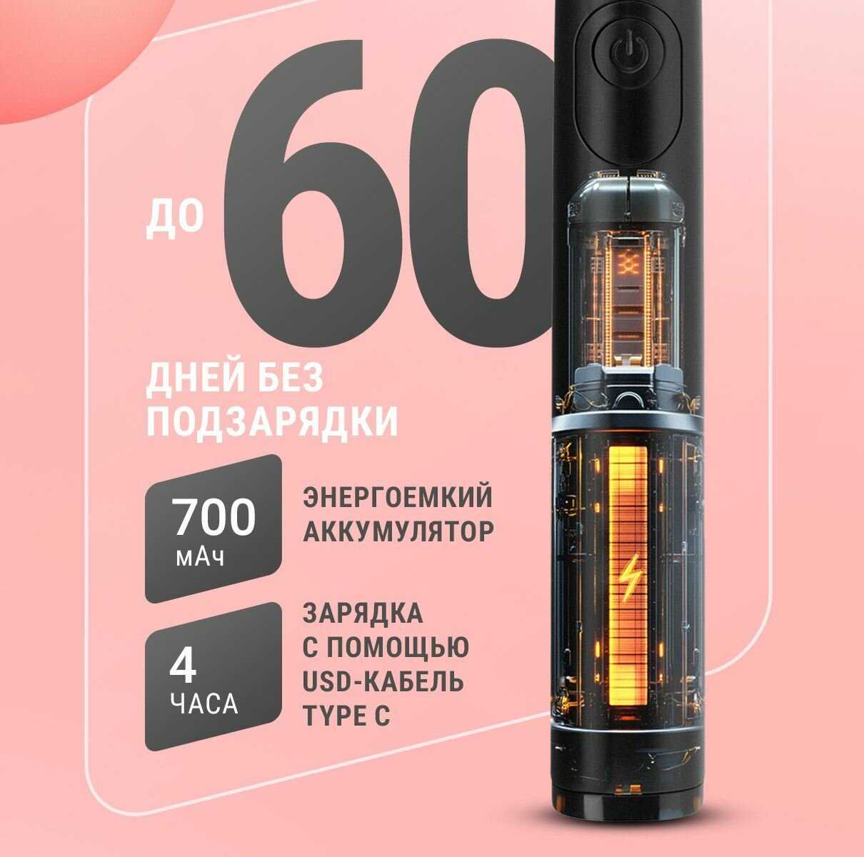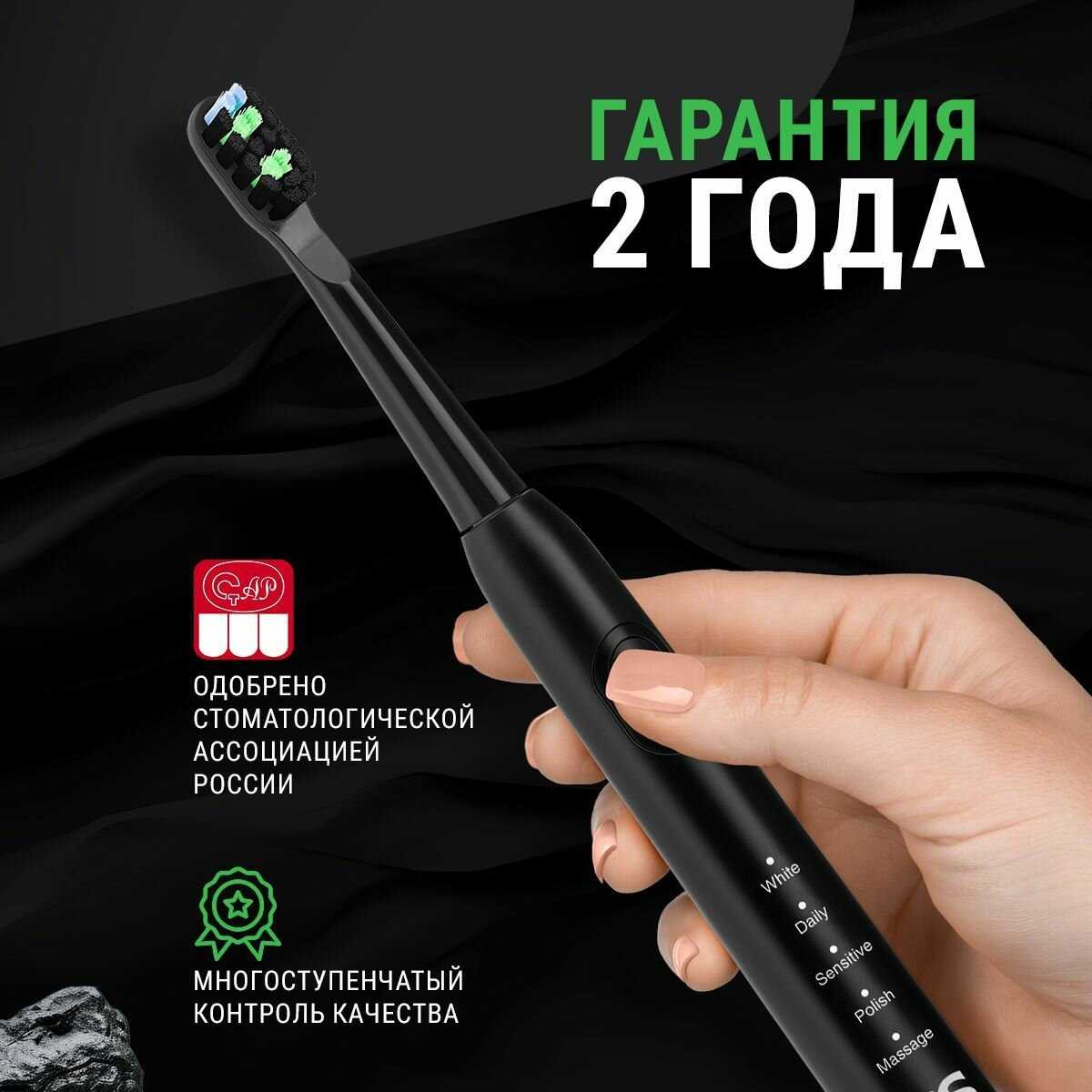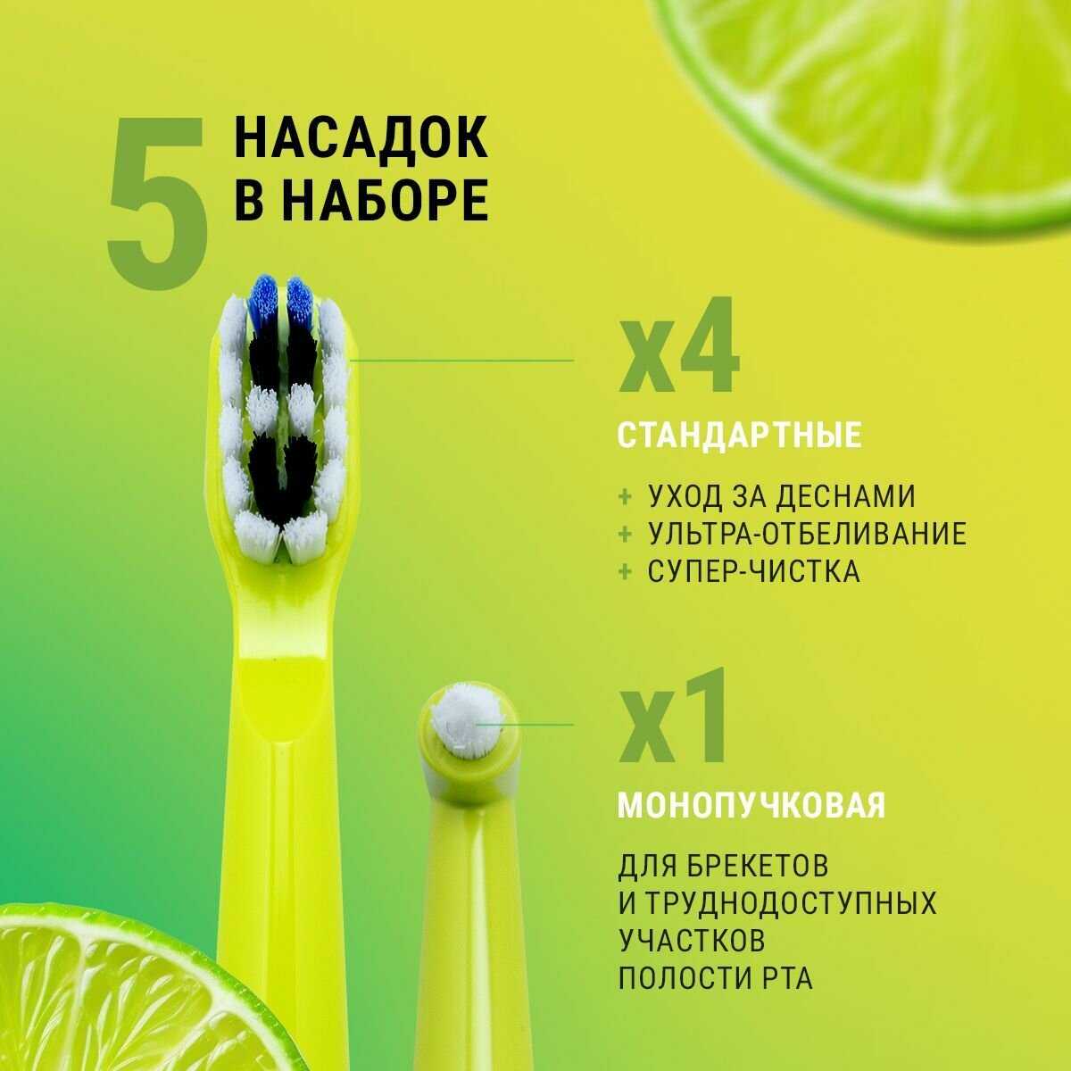 - + 5 режимов работы, ворсинки, меняющие цвет при необходимости замены