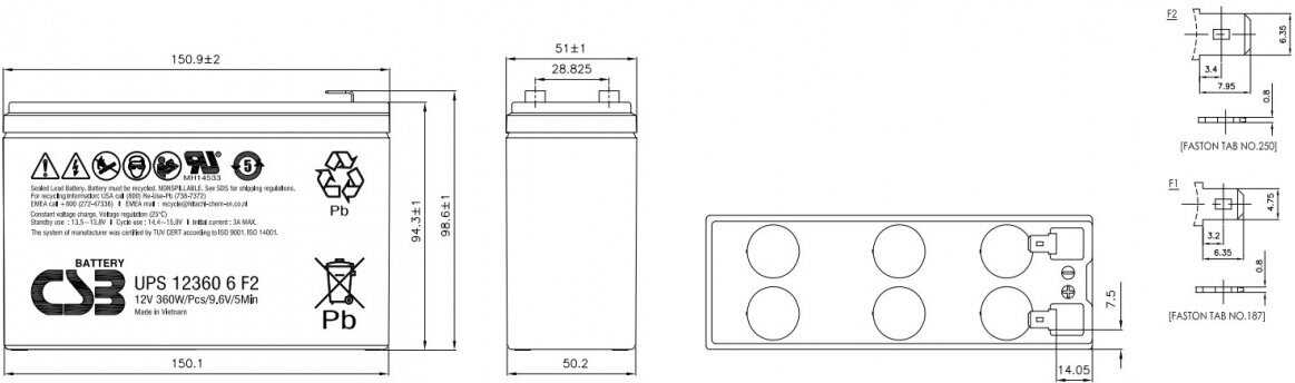 | Модель/исполнение : | свинец (сухой элемент, AGM) |