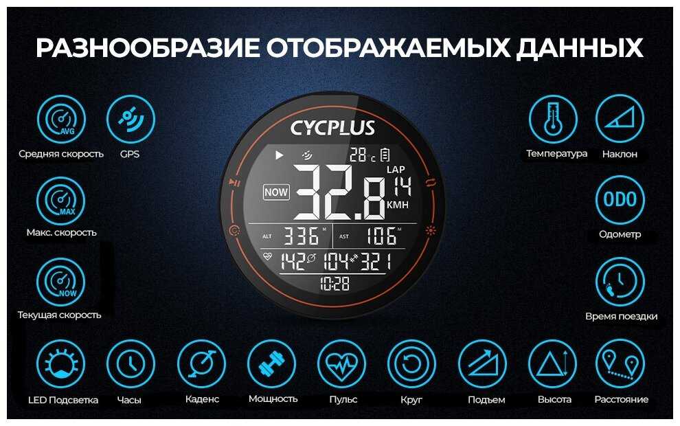 34 отзывов пользователей o Cycplus M2, 19 функций (совместим с датчиками: скорости, каденса, мощности, пульса)