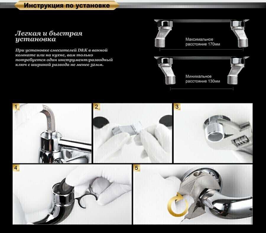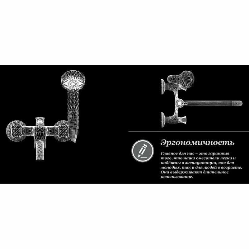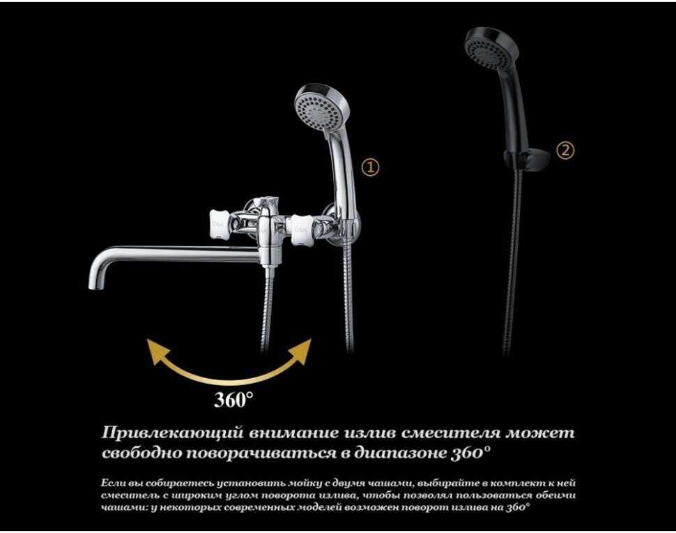 Особенности : | аэратор, S-образные эксцентрики, поворотный излив, держатель душевой лейки |
