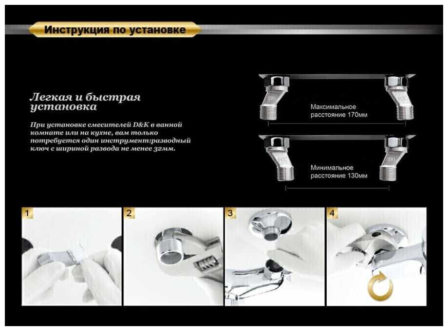 | @Комплектация : | смеситель - 1 шт, эксцентрики - 2 шт, декоративная шайба (отражатель) - 2 шт, шланг душевой - 1 шт, лейка душевая 3 режима - 1 шт, держатель душевой лейки - 1 шт, паспорт - 1 шт, брендовая сумка - 1 шт |