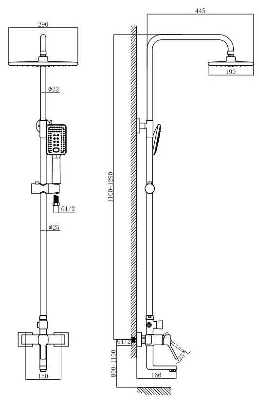 | Комплектация : | верхний душ, душевая стойка, кронштейн для верхнего душа, лейка, смеситель, шланг |
